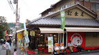 回程中有家賣店的店員很親切的要招待我們試吃"八ツ橋",有點像是薄涼粉切成正方形,中間包餡再延對角折成三角形,當我們說是台灣來的時候,她馬上就開始用中文介紹口味:巧克力、肉桂、紅豆、抹茶之類的,果然講中文的客人不在少數啊。